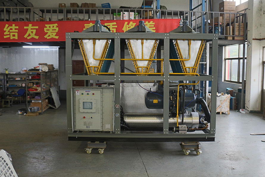 3、風(fēng)冷式反應(yīng)釜水循環(huán)工業(yè)制冷機組,通過風(fēng)扇以空氣為冷凝方式的控溫設(shè)備,有箱式和螺桿式;