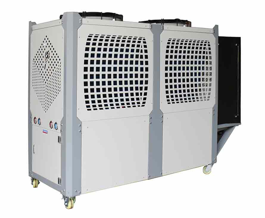 1、風(fēng)冷式吹塑配套制冷機(jī)組,通過風(fēng)扇以空氣為冷凝方式的控溫設(shè)備,有箱式和螺桿式;